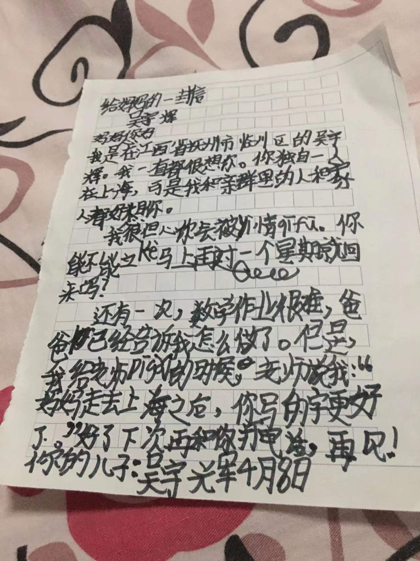 “我是后來(lái)才知道,兒子的這封信是瞞著家人寫的,并用奶奶的手機(jī)拍下來(lái)發(fā)給我。”張沖華告訴本網(wǎng),這是兒子給自己的第一封信,真的太感動(dòng)了,一定要認(rèn)認(rèn)真真的給他回一封信,話語(yǔ)中帶著哽咽。