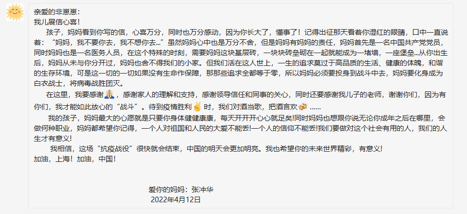 “一個(gè)人的信仰不能丟” 援滬護(hù)士凌晨給兒子寫下一封家書