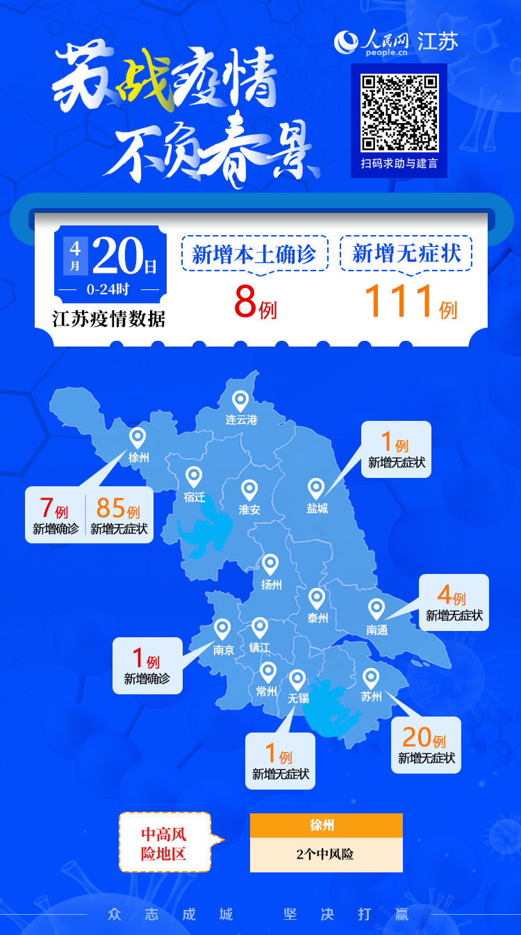 4月20日江蘇新增本土確診病例8例 本土無癥狀感染者111例