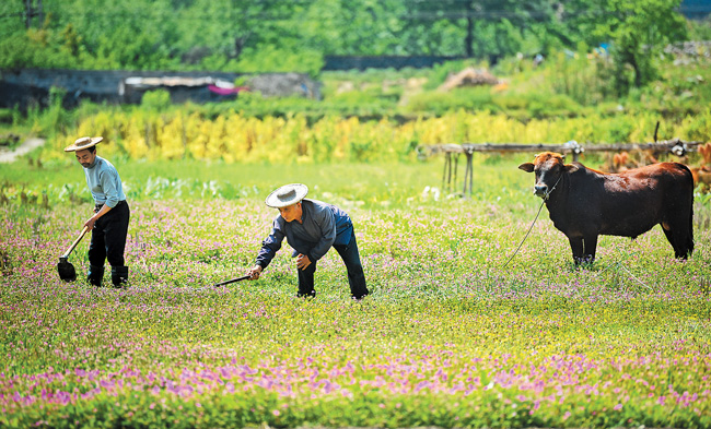 近日,麗水市青田縣禎埠鎮(zhèn)嶺下村村民正在收割紫云英。據(jù)了解,2021年,嶺下村黨支部利用農(nóng)田閑置期,投資20余萬元種植了130畝的紫云英。紫云英花海不僅成為嶺下村一道亮麗的風(fēng)景線,更是一種極佳的有機(jī)肥料,花期過后,紫云英草籽作為天然肥料還將滋沃這片土壤,實(shí)現(xiàn)觀賞和肥田“一箭雙雕”。(雷寧、張永益)