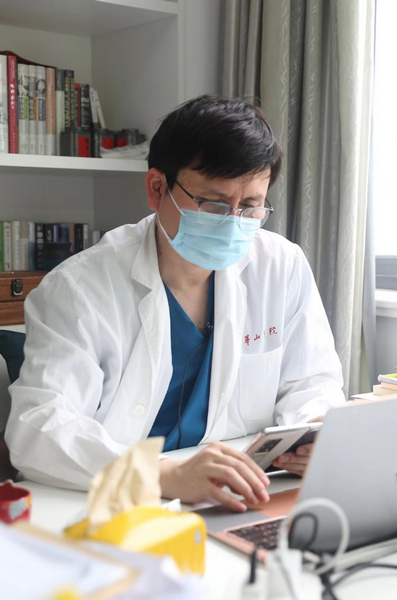 緊接著,張文宏和100余位專家視頻連線,會(huì)診各定點(diǎn)醫(yī)院的重癥患者。他在線聽到了好消息,“有一例危重型患者,兩次核酸陰性;還有3例基礎(chǔ)病重癥患者由原先的基礎(chǔ)病重癥轉(zhuǎn)為輕癥”……連線結(jié)束,他快速接受了大江東工作室的專訪,后面,他還有一場專家討論會(huì)要參加。