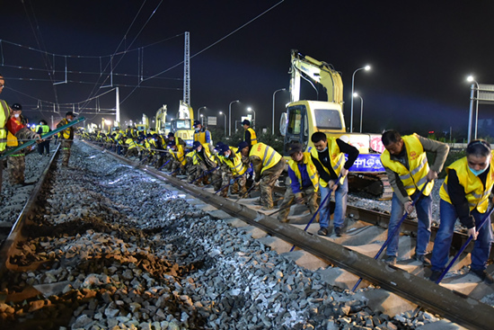 “22日20時40分至23日5時40分、24日22時至25日7時正式進(jìn)行京唐鐵路與京哈鐵路上下行42號道岔整體橫移插入施工,并取得圓滿成功?!敝袊F路北京局集團(tuán)有限公司所屬唐山工務(wù)段副段長王建介紹說,自3月15日以來,為嚴(yán)格落實沿線疫情防控政策,該段組織相關(guān)科室、車間20余名干部職工吃住在現(xiàn)場,對兩組道岔預(yù)鋪平臺搭設(shè)、預(yù)鋪組織、線下焊軌、探傷、標(biāo)志標(biāo)識油刷、放散、精調(diào)等進(jìn)行全程技術(shù)指導(dǎo),全力確保岔位和平縱斷面上線零誤差。