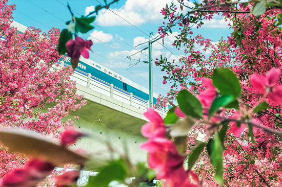 崔莊鎮(zhèn)域內(nèi)高鐵沿線海棠花盛開。 馬劭文攝