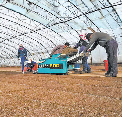 4月14日,吉林省各市州實現(xiàn)疫情防控社會面清零目標(biāo)。春耕時節(jié),全省堅持“兩手抓”,疫情防控不松勁,農(nóng)業(yè)生產(chǎn)不誤時。圖為龍井市智新鎮(zhèn)村民通過軌道車等設(shè)備進(jìn)行水稻育秧作業(yè)。