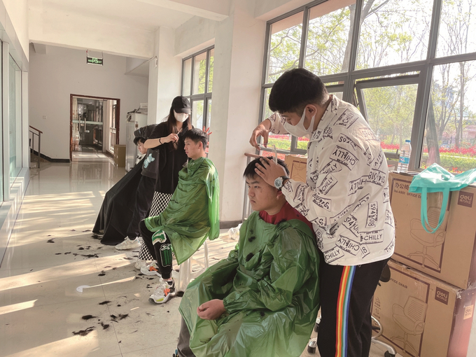 3月29日以來,江蘇農(nóng)林職業(yè)技術(shù)學(xué)院的3名學(xué)生組成“理發(fā)天團(tuán)”,累計為校內(nèi)200多名師生解決了“頭”等大事。(學(xué)生供圖)