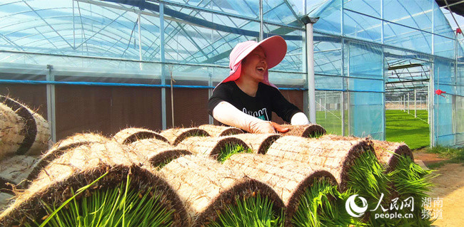 長沙市望城區(qū)的一位種糧大戶正在搬運(yùn)秧苗。劉賓攝