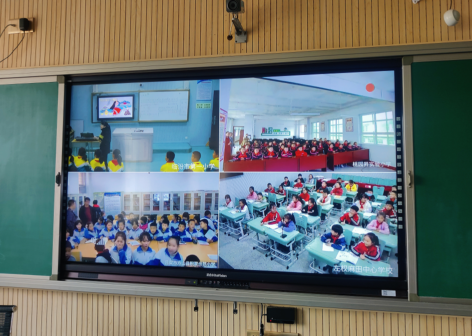 “同學(xué)們,我們今天學(xué)習(xí)《文房四寶》,請看大屏幕......”當(dāng)臨汾市第一小學(xué)三年級的陳老師話音剛落,同時在課的左權(quán)麻田中心學(xué)校、呂梁方山縣積翠小學(xué)、忻州市岢嵐縣桃園聲實驗小學(xué)的教室里就響起了一陣陣地驚嘆聲。“新型空間”里,四個相距百公里的200多名在校師生正沉浸在“晉享云課堂”教學(xué)中。