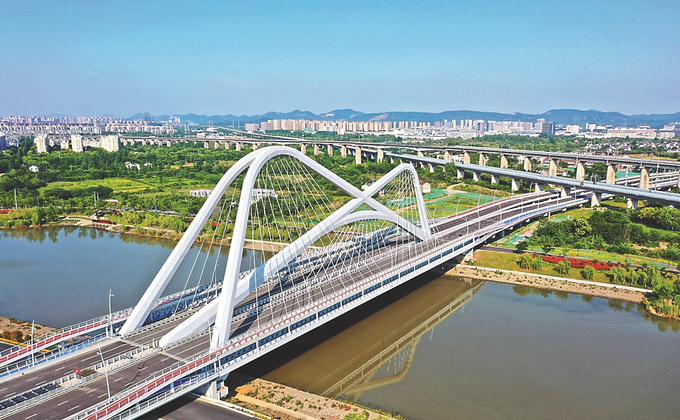 外觀猶如巨型“蝴蝶結(jié)”的南京秦淮灣大橋,目前已進(jìn)入竣工驗(yàn)收階段,預(yù)計(jì)將于9月正式投用。大橋連接南京繞城高速和南部新城,為市民前往南部新城提供更便捷的路線。 通訊員 李琦 本報(bào)記者 趙亞玲 攝