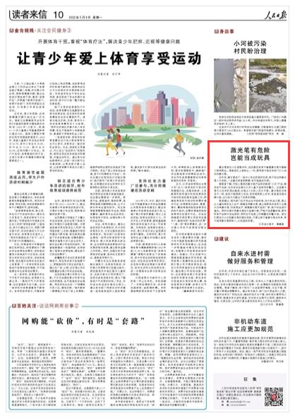 人民日?qǐng)?bào)刊發(fā)連云港讀者來(lái)信:激光筆有危險(xiǎn) 豈能當(dāng)成玩具