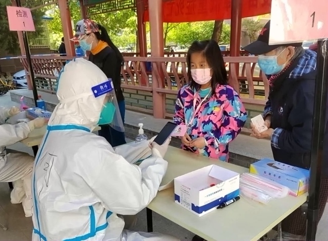 “讓我去封控區(qū),我年輕,身體好!”4月26日,紅廟北里小區(qū)部分區(qū)域?qū)嵤┓猓ü埽┛?,朝陽區(qū)八里莊街道社區(qū)衛(wèi)生服務(wù)中心護(hù)士劉彩麗主動請纓,就這樣,22歲的劉彩麗和其他4名同事承擔(dān)起5個(gè)單元門的核酸采樣任務(wù)。