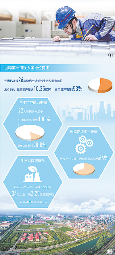 “目前,我國(guó)已經(jīng)建立起全球產(chǎn)業(yè)鏈最完備、規(guī)模最大的鋼鐵工業(yè)體系,配備了世界上最先進(jìn)的裝備、工藝和技術(shù),能提供最豐富齊全的鋼鐵產(chǎn)品。”中國(guó)鋼鐵工業(yè)協(xié)會(huì)黨委書(shū)記何文波說(shuō),黨的十八大以來(lái),鋼鐵業(yè)現(xiàn)代化水平不斷提升。