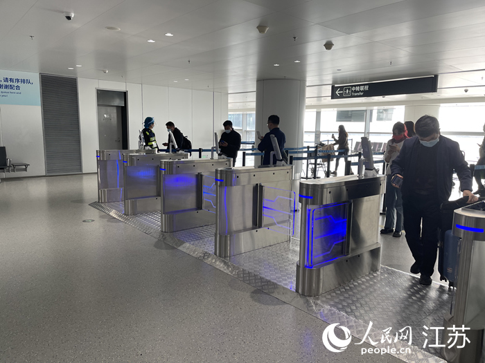 據(jù)機(jī)場(chǎng)工作人員介紹,祿口機(jī)場(chǎng)引入了智慧閘機(jī)安全門禁平臺(tái)系統(tǒng),普通旅客刷一次身份證便能驗(yàn)證“兩碼一證”,大大提高了出站效率。在引入這套系統(tǒng)前,機(jī)場(chǎng)人工核驗(yàn)的通行效率平均5人次/分鐘,如今單通道的通行效率提高到每分鐘40-50人次。