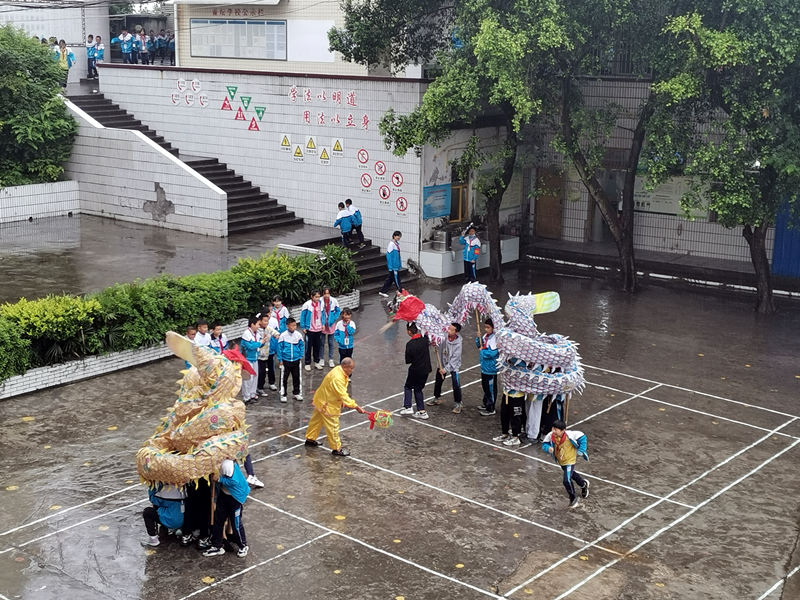 “我先是向師生傳授舞龍技藝基本動作,然后再選擇50個娃娃組建學(xué)生舞龍隊,再系統(tǒng)培訓(xùn)舞龍?!绷_德書說,從基本動作開始,再到套路訓(xùn)練、樂器訓(xùn)練,到了期末,基本就能進行一個完整的表演了。