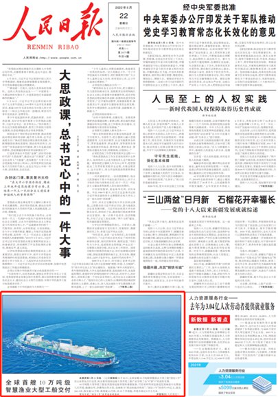 人民日?qǐng)?bào)頭版點(diǎn)贊山東青島這個(gè)“全球首艘”!