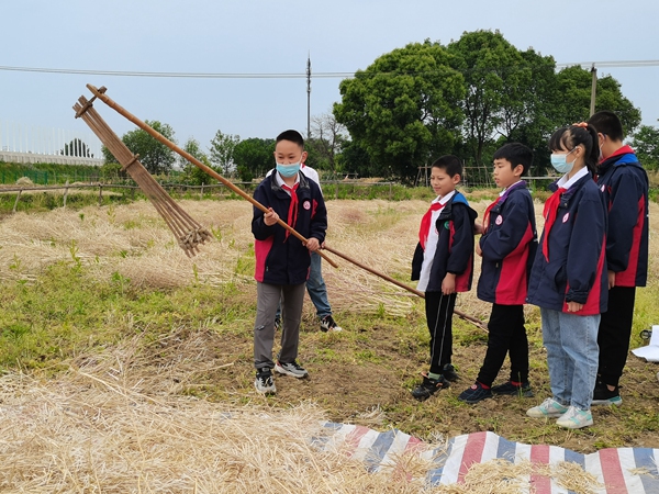 高淳區(qū)漆橋中心小學(xué)發(fā)揮地域優(yōu)勢(shì),拓寬勞動(dòng)實(shí)踐場(chǎng)所,依托街道中心村農(nóng)耕文化館開(kāi)展“打菜籽”研學(xué)活動(dòng)?!安倏v梿枷時(shí),前手上提,后手下壓,梿枷的轉(zhuǎn)軸循環(huán)轉(zhuǎn)動(dòng),反復(fù)拍打使油菜脫粒?!毙M廨o導(dǎo)員趙士華正詳細(xì)介紹油菜籽的收割、分離過(guò)程。通過(guò)講解,同學(xué)們對(duì)油菜籽的采收有了初步認(rèn)識(shí)。走進(jìn)田間,同學(xué)們紛紛擼起袖子,躍躍欲試。在趙士華的耐心指導(dǎo)下,同學(xué)們慢慢找到打油菜籽的正確方法,連枷不停地拍打下去,一粒粒油菜籽從油菜莢中躍出。同學(xué)們?cè)诹私廪r(nóng)耕知識(shí)、學(xué)習(xí)農(nóng)耕技能的同時(shí),體驗(yàn)勞動(dòng)的快樂(lè)。