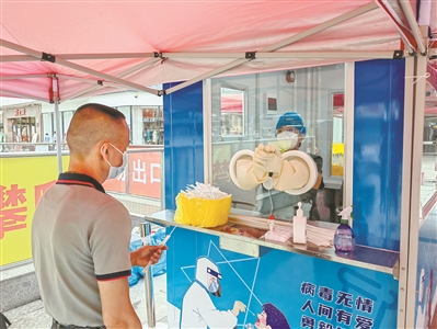 “不用擔(dān)心日曬雨淋、不用穿‘大白’、不用戴N95口罩、不用擔(dān)心被感染、不用連續(xù)工作六個(gè)小時(shí)……這樣的核酸采樣環(huán)境讓醫(yī)護(hù)人員心里暖暖的?!睆脑缟?點(diǎn)到中午12點(diǎn)連續(xù)采樣三個(gè)小時(shí),正在進(jìn)行交接工作的葉醫(yī)生告訴記者。