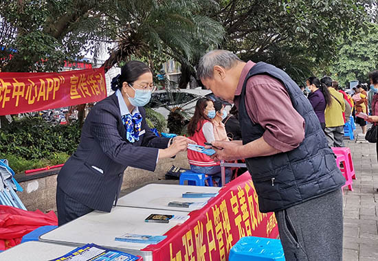 建行工作人員走進(jìn)社區(qū)開(kāi)展宣傳。鄧星攝