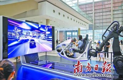 車展上,市民在體驗駕駛模擬器,享受駕駛樂趣。南方日報記者 魯力 攝