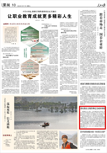 本報重慶5月16日電 (記者王欣悅)重慶市財政局、市農(nóng)業(yè)農(nóng)村委、重慶銀保監(jiān)局日前聯(lián)合印發(fā)通知,要求今年起在萬州、黔江等27個產(chǎn)糧大區(qū)(縣)開展稻谷、玉米、馬鈴薯3種主要糧食作物完全成本保險,為農(nóng)戶提供更高水平的風(fēng)險保障。
