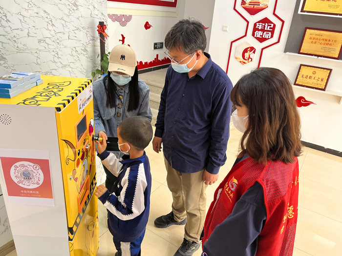 在半島書香社區(qū),居民通過(guò)智能電池回收器回收電池就可獲得文明積分。 受訪者供圖