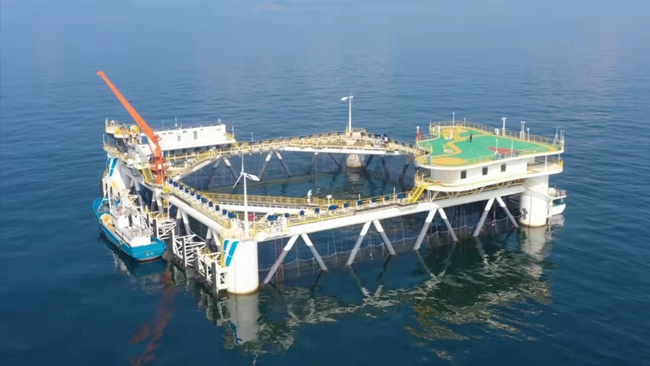 亞洲最大的深海智能網(wǎng)箱“經(jīng)海001號(hào)”。 中集來福士供圖
