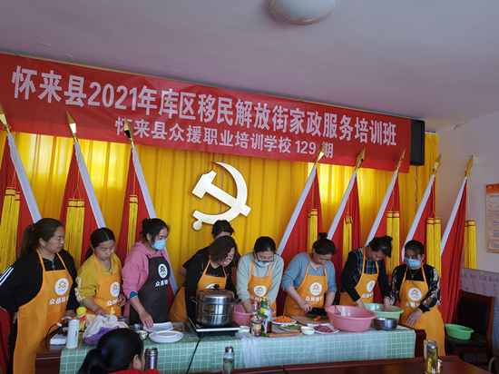 懷來縣眾援職業(yè)培訓(xùn)學(xué)校對新保安鎮(zhèn)解放街村部分婦女進(jìn)行中式面點專業(yè)培訓(xùn)。 懷來縣委組織部供圖