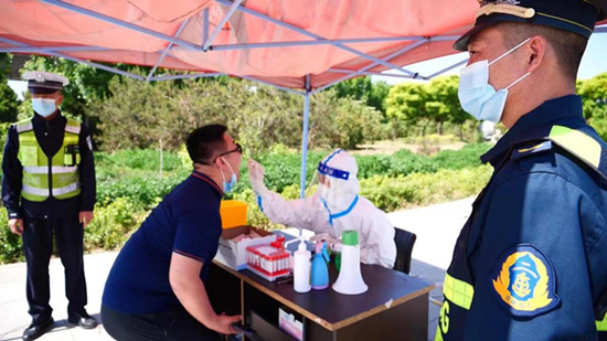 貨車司機(jī)正在服務(wù)區(qū)做核酸檢測。 河北省交通運(yùn)輸廳供圖