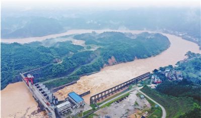 18日,廣西柳州市融水苗族自治縣出現(xiàn)持續(xù)強(qiáng)降雨過(guò)程,落久水利樞紐開閘泄洪。