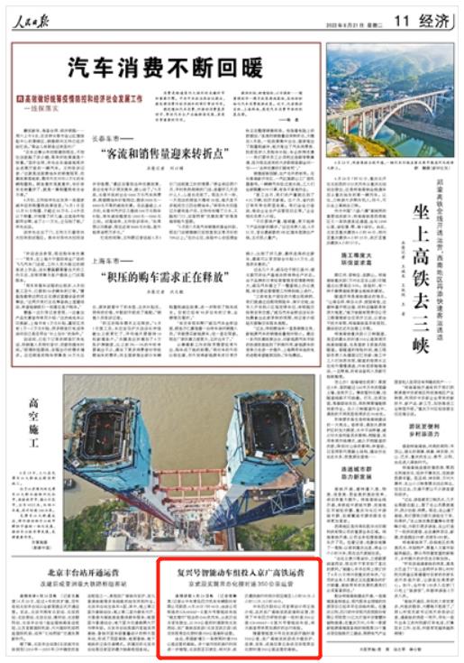 復(fù)興號(hào)智能動(dòng)車組投入京廣高鐵運(yùn)營