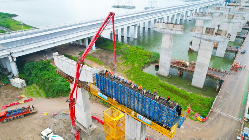 浙江曹娥江特大橋蓋梁全部澆筑完成