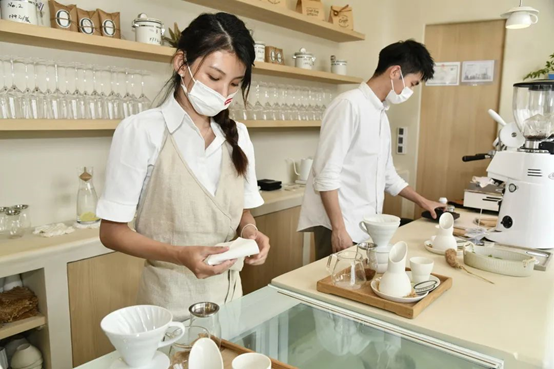 如今,Lily的兩家店一共12名員工,其中7名是“聾人”。在老板細(xì)致的介紹下,王愛(ài)芬了解了咖啡店的運(yùn)營(yíng)狀況和“聾人”的用工比例,對(duì)店內(nèi)兩位“聾人”服務(wù)員的沖泡咖啡的手法也是贊不絕口。