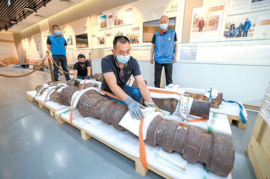 有了“腿”,神炮便“來(lái)去自如”了許多。之后,將用液壓拖車(chē)機(jī)械裝車(chē),與館內(nèi)所有文物統(tǒng)一運(yùn)輸。