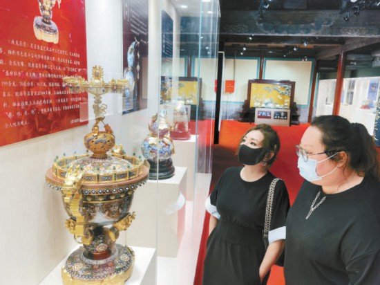 昨天,“匠心筑夢(mèng)共創(chuàng)未來(lái)——燕京八絕非遺創(chuàng)新精品展暨中國(guó)工藝美術(shù)大師張同祿景泰藍(lán)傳承作品特展”在千年古剎承恩寺北京燕京八絕博物館開(kāi)幕。觀(guān)眾品鑒了《座龍花薰》《富貴恒通》《花漫春和》《智趣》等二十余件題材豐富廣泛、釉質(zhì)細(xì)膩華美、造型多姿多彩、立意莊重深遠(yuǎn)的景泰藍(lán)工藝精品。 本報(bào)記者 吳鏑攝
