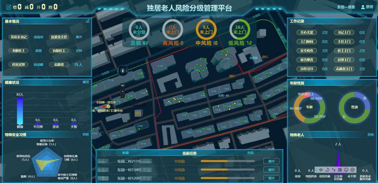 獨(dú)居老人風(fēng)險(xiǎn)分級(jí)管理平臺(tái)。東一居民區(qū)供圖
