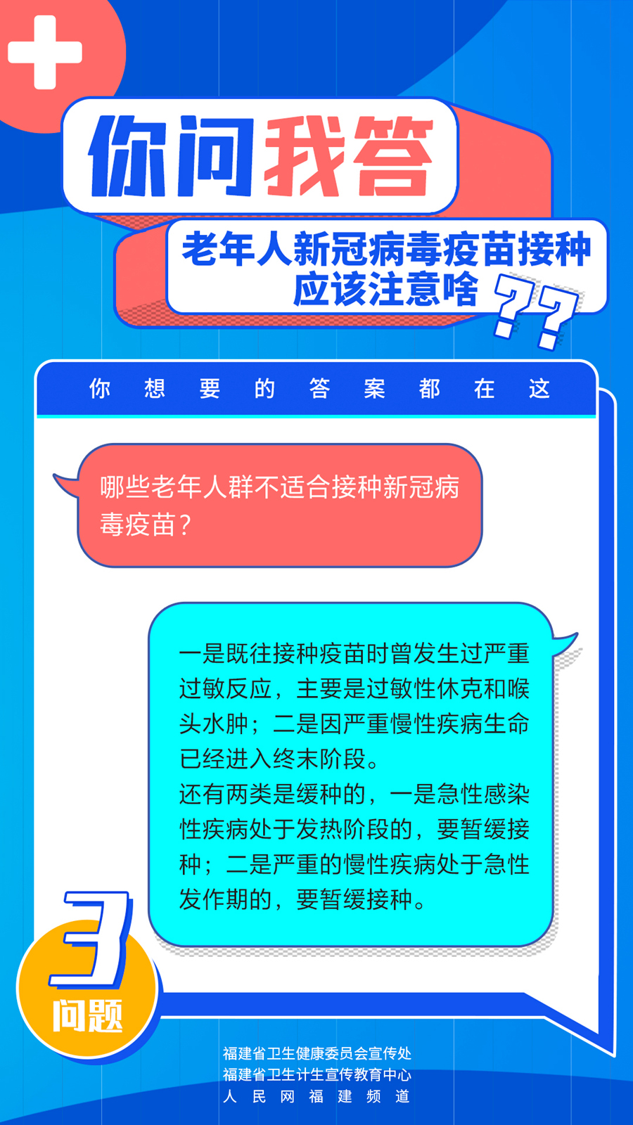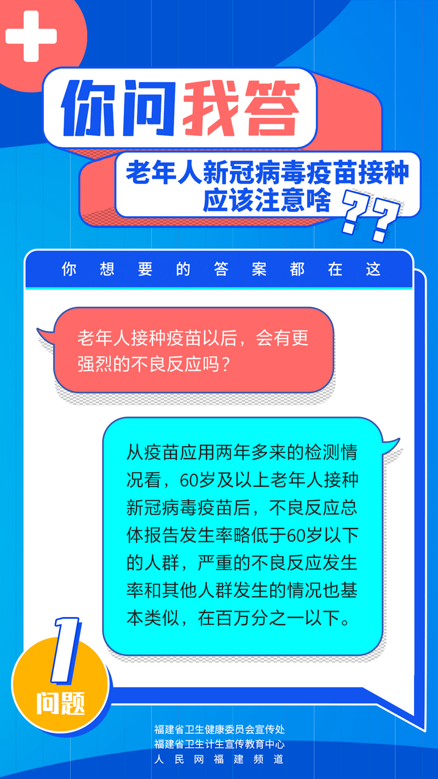 老年人接種疫苗是否安全?會(huì)有更強(qiáng)烈的不良反應(yīng)嗎?哪些老年人群不適合接種新冠病毒疫苗?你問(wèn)我答,快問(wèn)快答!老年人新冠病毒疫苗接種究竟應(yīng)該注意啥?