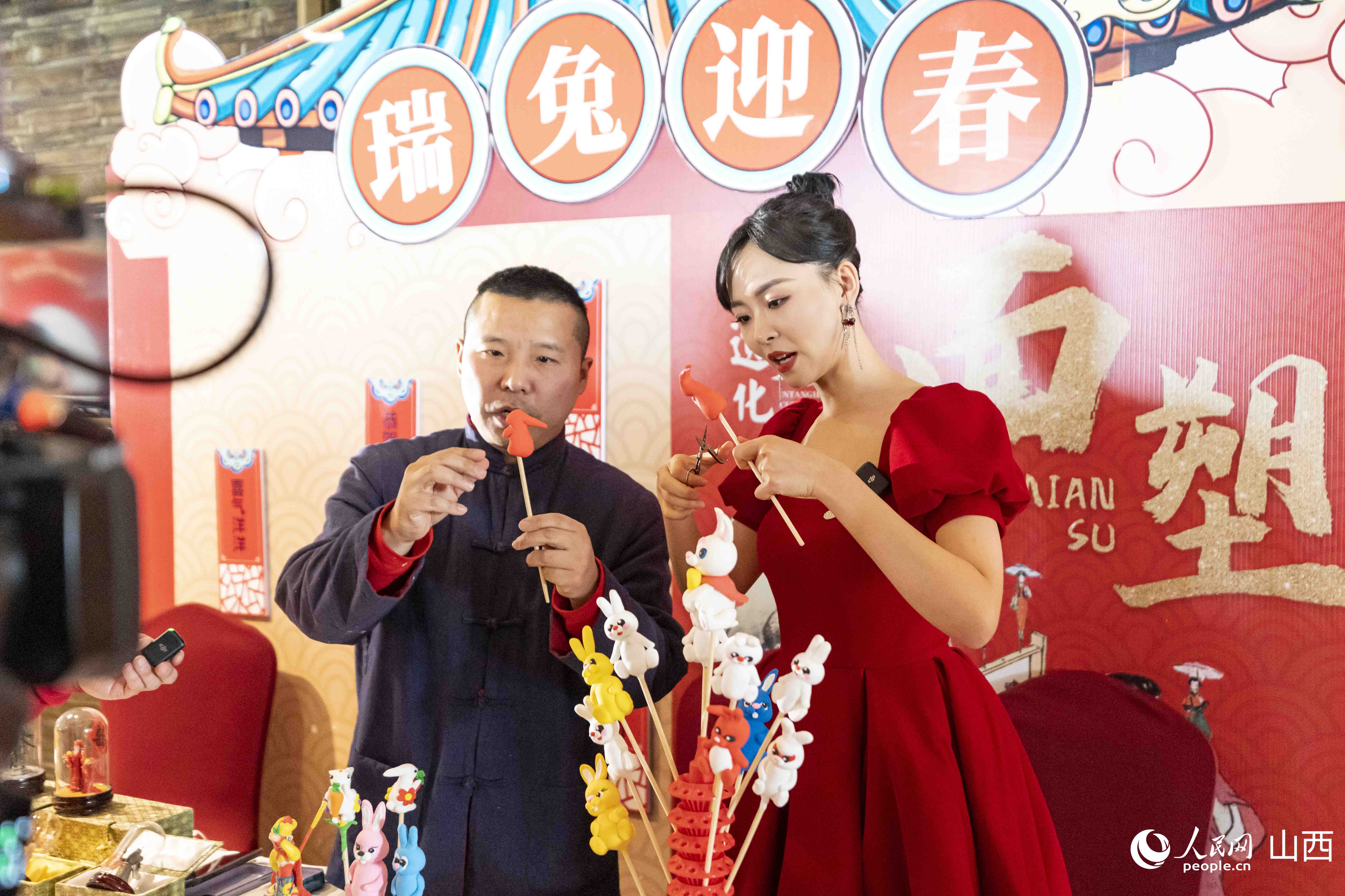 在推介活動(dòng)現(xiàn)場(chǎng),精心布置了“新春市集”互動(dòng)體驗(yàn)區(qū)、年俗非遺互動(dòng)體驗(yàn)區(qū)、年俗節(jié)目快閃區(qū)等頗具山西特色文化的體驗(yàn)區(qū)域,營(yíng)造了喜慶、熱烈的春節(jié)氛圍。剪紙、木板年畫(huà)、糖畫(huà)、面塑等項(xiàng)目,讓現(xiàn)場(chǎng)嘉賓沉浸式體驗(yàn)山西非遺的獨(dú)特魅力。在山西年俗表演快閃區(qū)域,舞獅表演、旱船等山西社火表演,讓濃濃的年味迎面撲來(lái)?;顒?dòng)中,飽含山西大院文化符號(hào)、中國(guó)結(jié)等元素,寓意團(tuán)圓美滿的山西文旅兔年IP形象“晉小美”也首次亮相。
