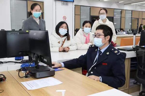 贛榆區(qū)政務服務中心,工作人員正在辦理審批。贛榆區(qū)委宣傳部供圖