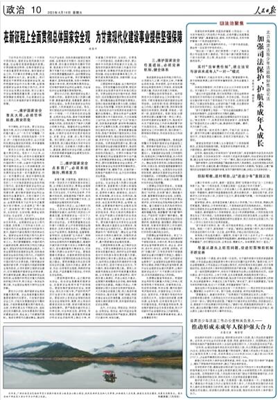 在新征程上全面貫徹總體國家安全觀 為甘肅現(xiàn)代化建設事業(yè)提供堅強保障