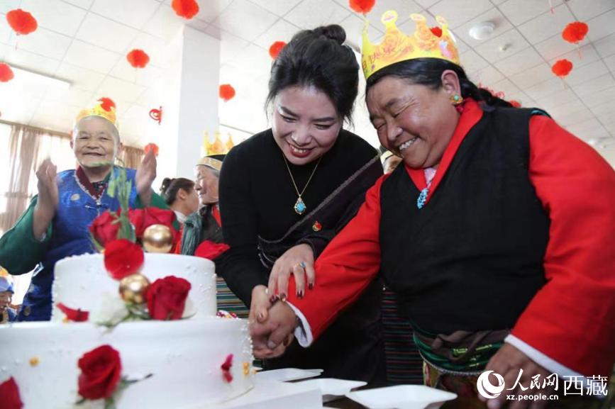 3月8日,拉薩市墨竹工卡縣民政局開展敬老、愛老趣味活動。人民網 李海霞攝