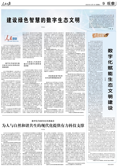 人民日報整版探討:數(shù)字化、智能化為生態(tài)文明建設(shè)提供新路徑