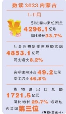 對(duì)外貿(mào)易增量提質(zhì)。2023年1-11月份,內(nèi)蒙古貨物進(jìn)出口總額1721.5億元,同比增長29.7%,增速位列全國第三位。呼和浩特市、包頭市、烏蘭察布市獲批自治區(qū)服務(wù)外包示范城市。烏蘭察布市獲批國家加工貿(mào)易梯度轉(zhuǎn)移重點(diǎn)承接地。組織693家企業(yè)赴阿聯(lián)酋、沙特、蒙古國、俄羅斯等20個(gè)國家和地區(qū)開展“蒙商絲路行”海外經(jīng)貿(mào)活動(dòng),達(dá)成貿(mào)易與投資合作協(xié)議總金額超332億元。新批復(fù)設(shè)立阿日哈沙特、阿爾山邊民互市貿(mào)易區(qū),二連浩特邊民互市貿(mào)易進(jìn)口商品落地加工試點(diǎn)啟動(dòng)。5個(gè)縣域外經(jīng)貿(mào)破零增量示范地區(qū)培育工作有序推進(jìn)。認(rèn)定自治區(qū)公共海外倉培育對(duì)象7家。組織500余家企業(yè)參加第三屆消博會(huì)、第133屆廣交會(huì)、2023年服貿(mào)會(huì)等知名展會(huì)。