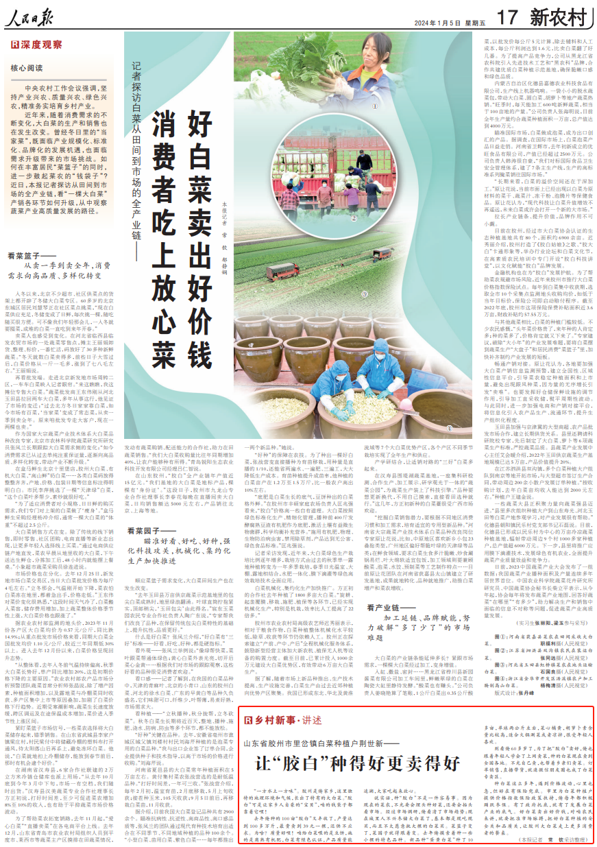 人民日?qǐng)?bào)刊發(fā)“膠白”種植戶感言:讓大白菜種得好更賣得好