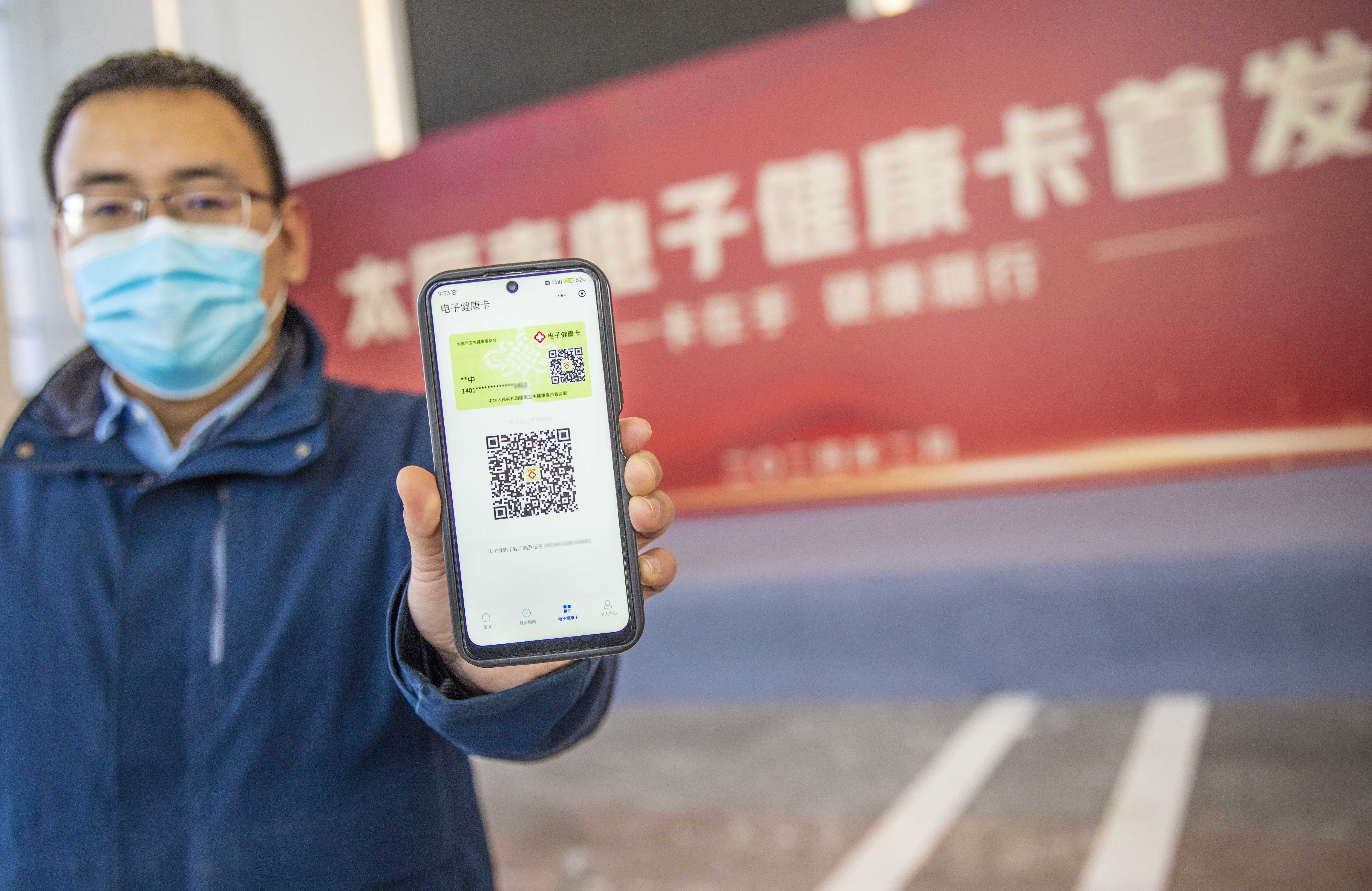 市民掃碼注冊太原市電子健康卡。人民網(wǎng)記者王帆攝