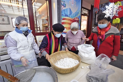 為解決市民扎堆排隊(duì),便宜坊集團(tuán)今年鋪設(shè)了約100個(gè)錦芳元宵銷售網(wǎng)點(diǎn),并首次進(jìn)駐物美超市。京味兒十足的護(hù)國寺小吃總店繼續(xù)堅(jiān)持“現(xiàn)搖現(xiàn)售”,不但推出了巧克力、黑芝麻等傳統(tǒng)口味元宵,還上新了流心榴蓮餡,增加電話預(yù)訂、線上購買業(yè)務(wù)。老字號又一順專門用火龍果調(diào)色,制作出巧克力餡、玫瑰紅的限量版元宵。峨嵋酒家推出了用蔬菜汁、水果汁調(diào)出的“五彩”湯圓。華天集團(tuán)微信公眾號推出“猜燈謎”互動(dòng)小游戲,猜出謎底可獲得不同面值會(huì)員商城優(yōu)惠券。