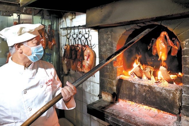 如今,年逾古稀的老張?jiān)缫堰^(guò)了退休的年齡,可他還不想“早退”。“別的我不行,我就會(huì)烤鴨子。只要身體允許,我想每天都工作?!笨粗t通通的爐火,張立群用鉤子一搭,又一只烤鴨出爐了。