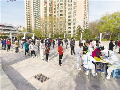 4月7日,海淀區(qū)中關(guān)村街道太陽(yáng)園,小區(qū)居民在進(jìn)行全員核酸檢測(cè)。新京報(bào)記者 浦峰 通訊員 李啟晗 攝
