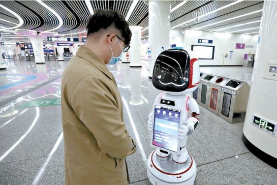 可問首末車時間、可查航班信息、可在站內(nèi)導(dǎo)航……昨天(7日),北京地鐵大興機(jī)場線草橋站新“員工”——首批車站智能服務(wù)機(jī)器人正式上崗。乘客在站內(nèi)遇到問題可向它提問,近距離體驗智慧地鐵的服務(wù)。
