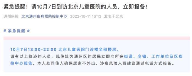 通州疾控:10月7日這一時(shí)段到訪北京兒童醫(yī)院人員立即報(bào)備