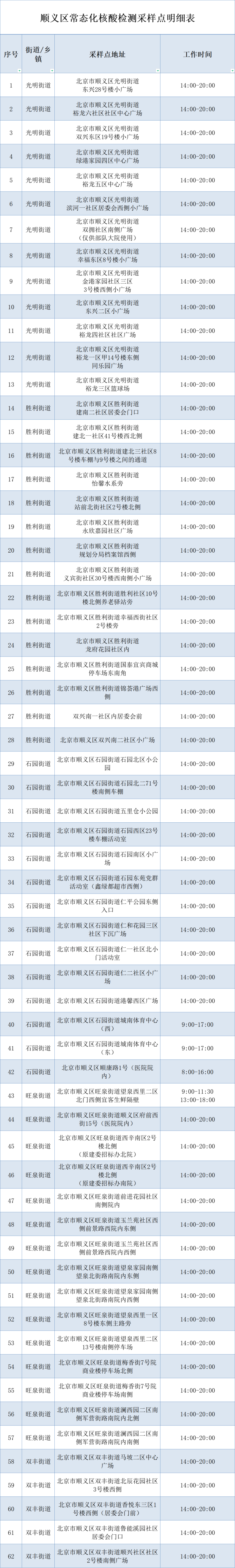 為了滿足市民就近檢測的需要,順義區(qū)公布了核酸采樣點(diǎn)位置和開放時(shí)間。