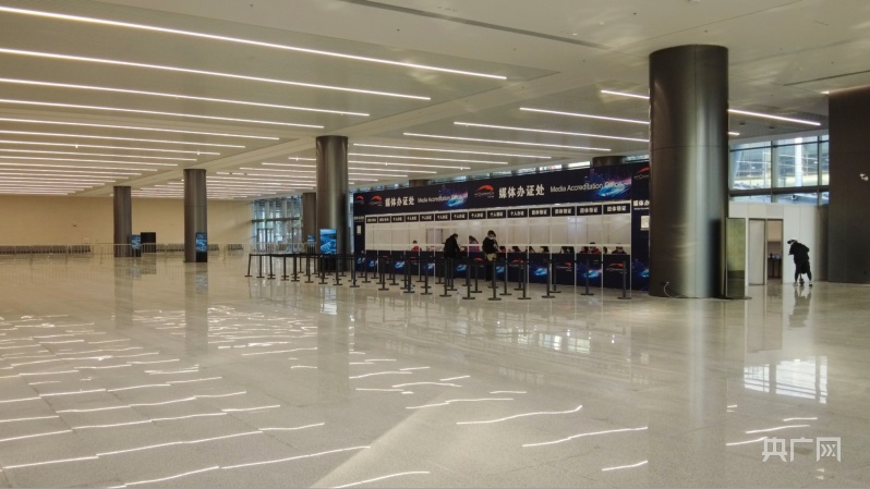D區(qū)設有東西兩個登錄大廳,面積分別為9600、3000㎡,凈高約3.5米,圖為東登錄大廳(央廣網(wǎng)記者 夏燕 攝)